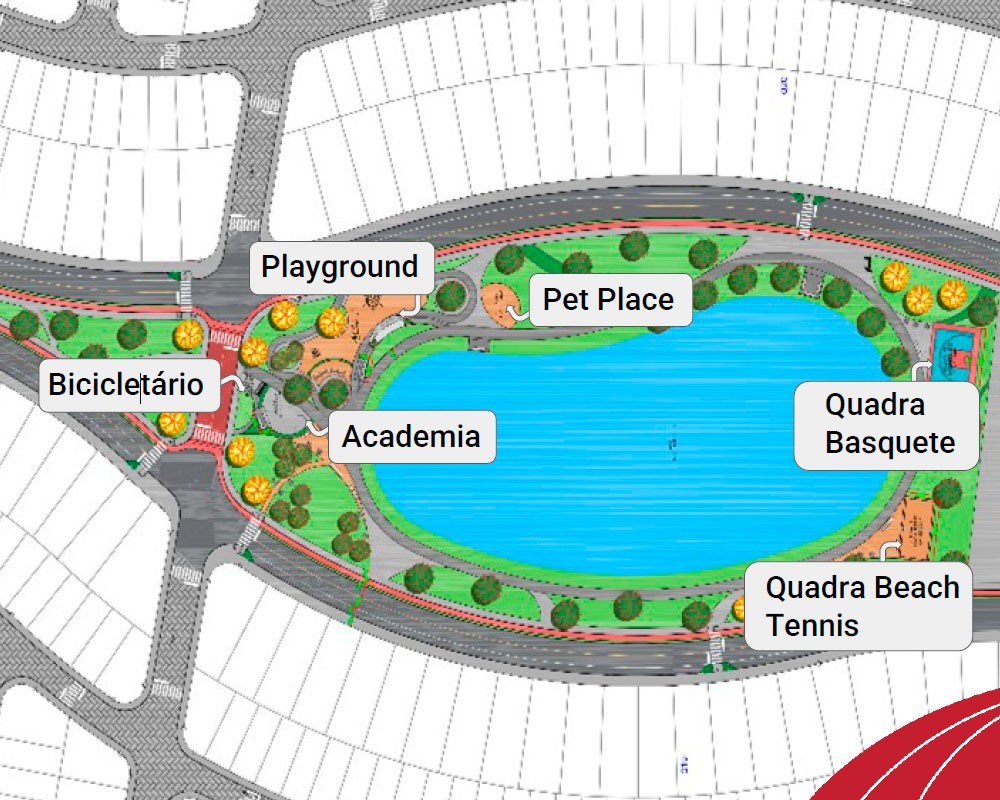 Características do loteamento: pavimentação asfáltica na via principal e em lajotas nas ruas transversais, pet place, praça, paisagismo, playground, ciclovia e academia ao ar livre.